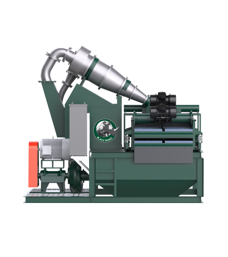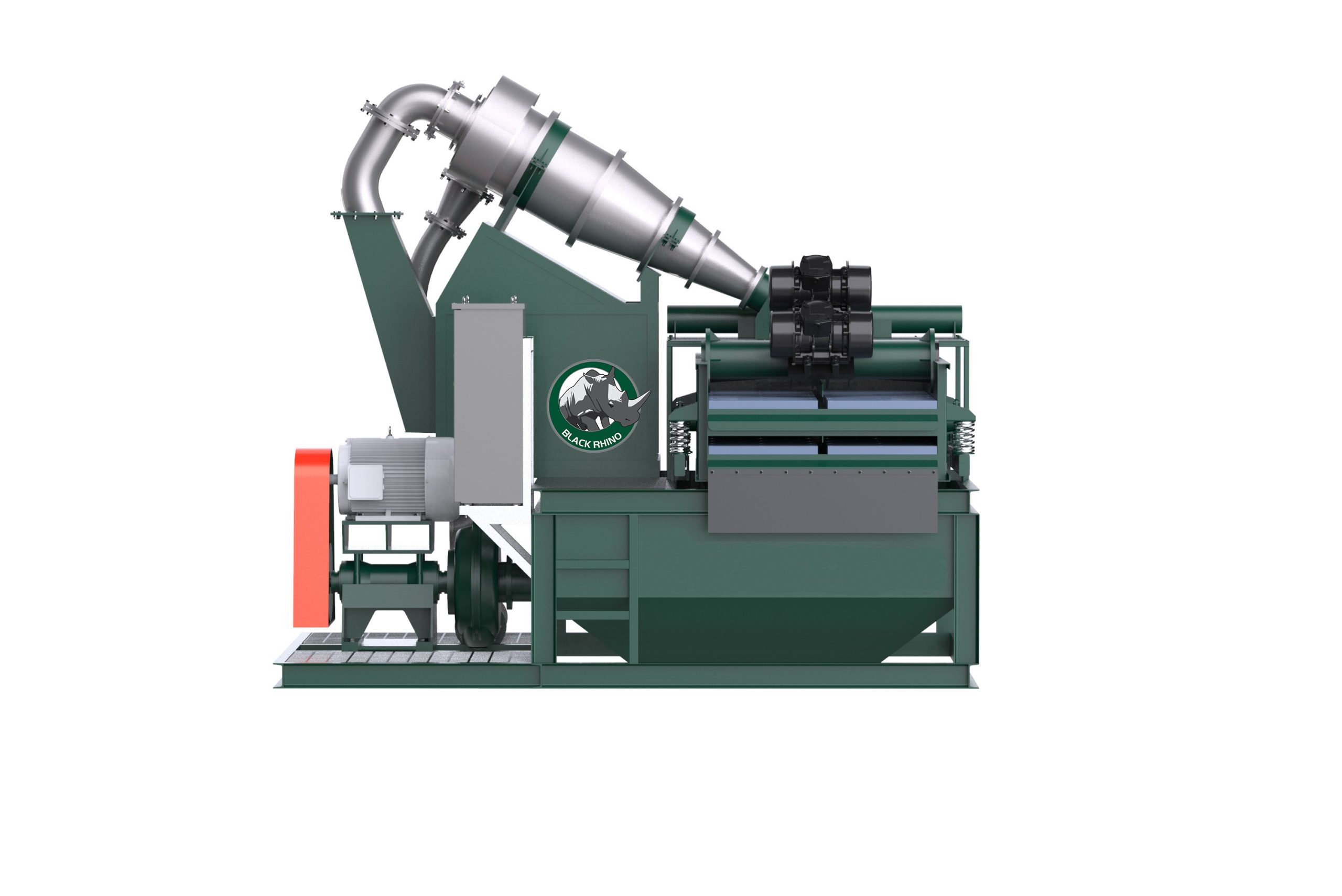 El sistema de separación de lodos de la serie KD de la marca Black Rhino se compone principalmente de cuatro partes: una zaranda vibratoria, un ciclón de arena, una bomba de arena y grava y un tanque cónico. La zaranda vibratoria cuenta con una malla de cribado grueso y una malla fina; la malla gruesa elimina las partículas gruesas de lodo y escoria, mientras que el ciclón de arena y la malla vibratoria fina eliminan las partículas más pequeñas de arena. El método de purificación de lodo en circuito cerrado y el bajo contenido de agua en la escoria contribuyen a reducir la contaminación ambiental. Los componentes del sistema se caracterizan por su larga vida útil y baja tasa de fallos, y pueden utilizarse en diversas condiciones de trabajo adversas.