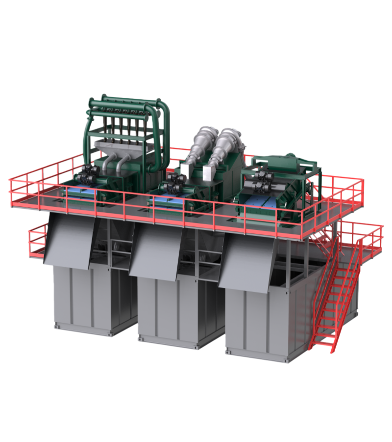 El sistema de separación de lodos de la serie KD de la marca Black Rhino de medio ambiental de KOSUN se divide en un módulo de cribado grueso, un módulo de eliminación de arena, un módulo de eliminación de lodo y un módulo de tratamiento de lodos residuales. Mediante equipos de fabricación y mezcla de pulpa, se logra el equilibrio de flujo, el equilibrio de materiales y el ajuste y compensación rápida del lodo de circulación del sistema de escudo. Los módulos de eliminación de arena y lodo del sistema de separación de lodo y agua garantizan una separación eficaz de la arena y el lodo en el lodo de circulación del escudo. El sistema utiliza un sistema de control remoto mediante una sala de control centralizada PLC, lo que permite el control remoto centralizado y la monitorización en tiempo real del sistema de tratamiento de lodos. El sistema está equipado con una criba de deshidratación por vibración de alta frecuencia para lograr un contenido de agua en los residuos externos ≤25%, lo que permite el transporte directo en camiones volquete y reduce las fugas de lodo. En el módulo de tratamiento de lodos residuales, el exceso de lodo se trata mediante equipos de filtración centrífuga o a presión para garantizar la descarga cero de lodo de ingeniería y el reciclaje del agua.