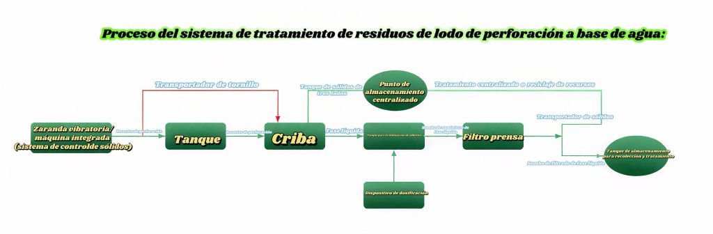 El sistema de tratamiento de lodos de perforación sin vertido a base de aceite, también conocido como sistema de tratamiento de recortes de roca sin vertido o sistema de tratamiento de recortes de perforación sin vertido, es un equipo de tratamiento indispensable para la protección del medio ambiente en las operaciones de perforación modernas. El sistema consta de varios equipos clave, como un secador de recortes de roca, una centrífuga de frecuencia variable de alta velocidad, un tanque integrado montado sobre patines, una bomba de lodos sumergible, un mezclador, un transportador de tornillo y cajas de recortes de roca, conformando un sistema de tratamiento completo.